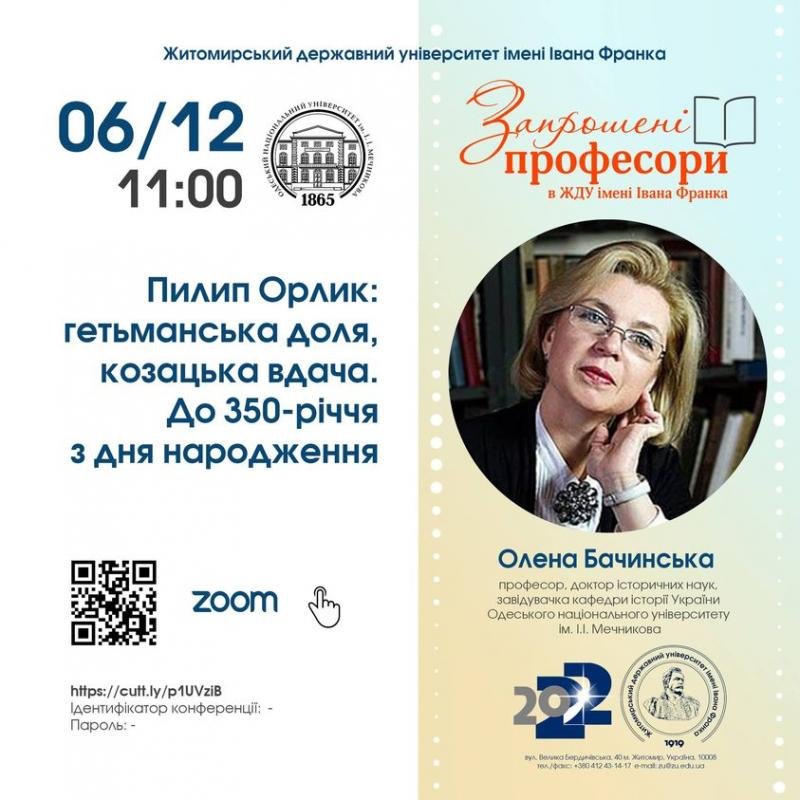 Тема лекції: "Пилип Орлик: гетьманська доля, козацька вдача. До 350-річчя з дня народження".
