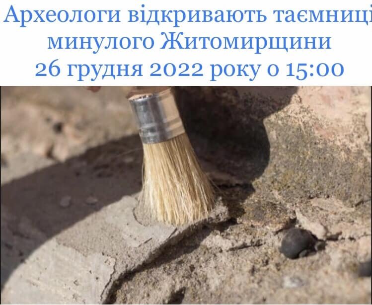 Управлінням національно-патріотичного виховання, молоді та спорту Житомирської ОДА/ОВА спільно з Житомирським державним університетом імені Івана Франка 26 грудня 2022 року о 15:00 «Археологи відкривають таємниці минулого Житомирщини».