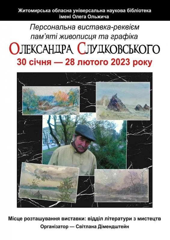 Запрошуємо усіх бажаючих відвідати віставку-реквієм, присвячену пам'яті живописця та графіка Олександра Слудковського.