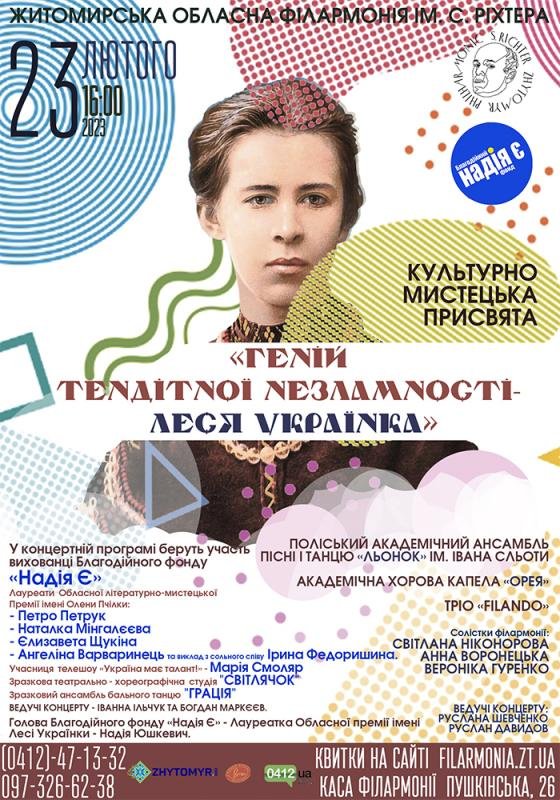 Запрошуємо усіх бажаючих відвідати культурно-мистецьку посвяту «Геній тендітної незламності-Леся Українка»