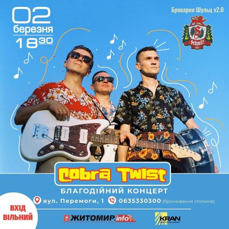 2 березня о 18:30 у Броварні Шульц v.2.0 виступатиме супер гурт «COBRA TWIST»