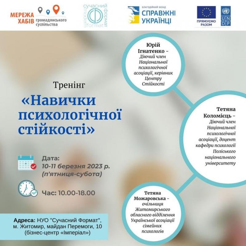 Запрошуємо благодійні фонди, громадські організації на тренінг «Навички психологічної стійкості».