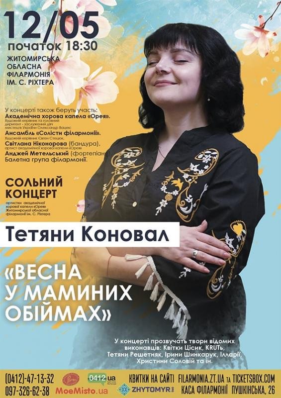 Сольний концерт артистки академічної хорової капели «Орея» Житомирської обласної філармонії ім. С. Ріхтера Тетяни Коновал.