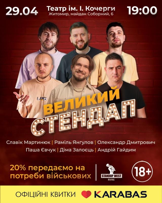 Запрошуємо Вас на грандіозну подію у Житомирі - "Великий Стендап" у Театрі ім. Івана Кочерги!