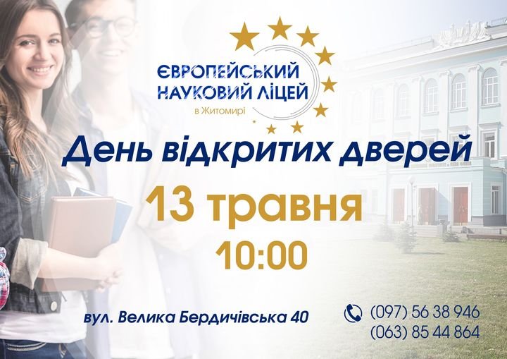 Тоді запрошуємо до Європейського наукового ліцею Житомирського державного університету імені Івана Франка на День відкритих дверей.