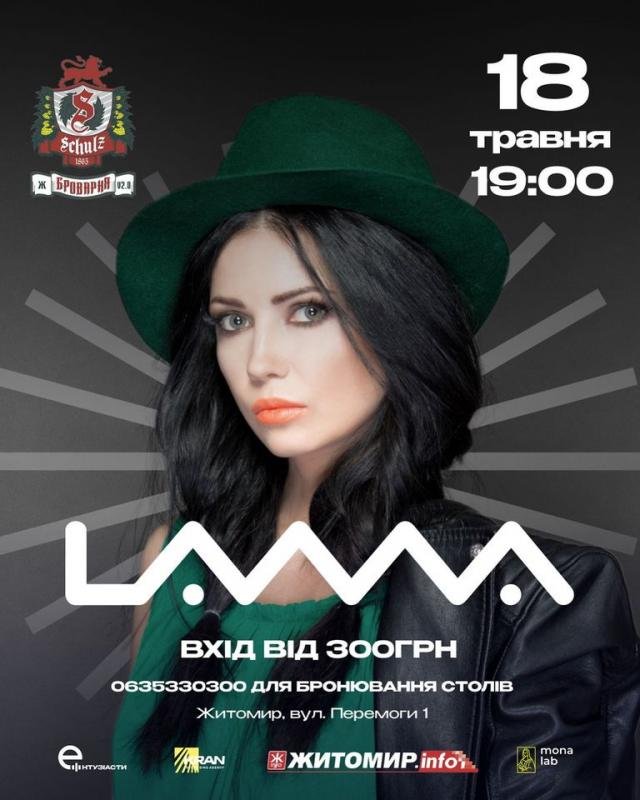 Виступ у Житомирі буде наповнений різномаїттям пісень виконавиці, які вражають та захоплюють, від чуттєвих, романтичних і ліричних хітів до запалюючих танцювальних. Також не обійдеться і без сюрпризів, вперше, допремʼєрно Lama презентує слухачам свою зовсім свіжу музичну новинку. Кожен концерт це гаряча суміш зашкалюючої енергії, драйву та емоцій які доповнюються надпотужним живим звуком.