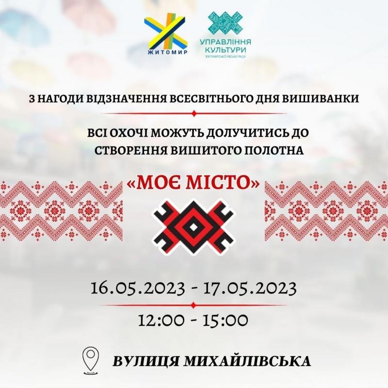 З нагоди відзначення Всесвітнього Дня вишиванки запрошуємо всіх охочих долучитись до створення вишитого полотна "Моє місто"!
