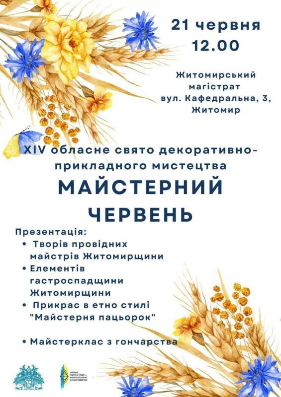 21-го червня відбудеться XIV обласне свято декоративно-прикладного мистецтва «Майстерний червень» в Житомирському магістраті.