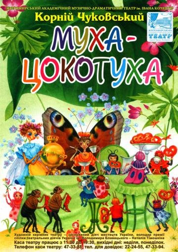На іменини до Цокотухи прибігли Комашки,Блощички, Червоне сонечко та Коник стрибунець, прекрасний Метелик та… кровожерливий Павук, який викрадає Муху.