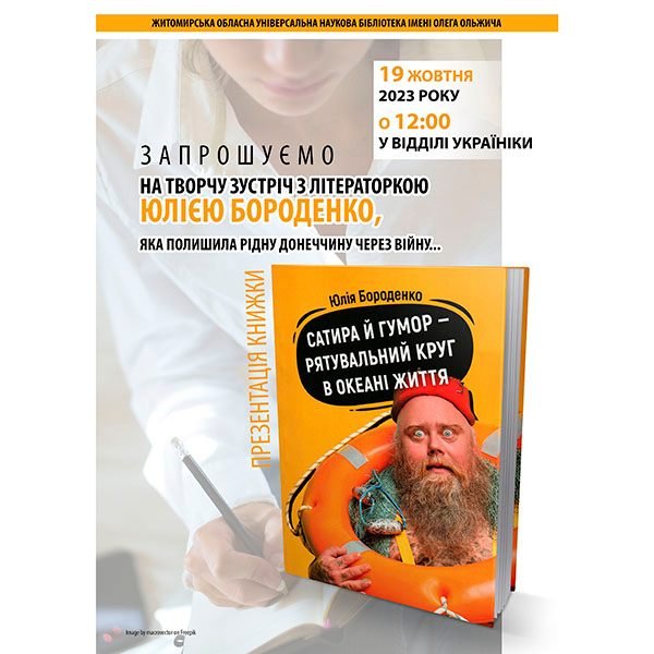 19 жовтня 2023 року у відділі україніки бібліотеки відбудеться творча зустріч з літераторкою ЮЛІЄЮ БОРОДЕНКО.
