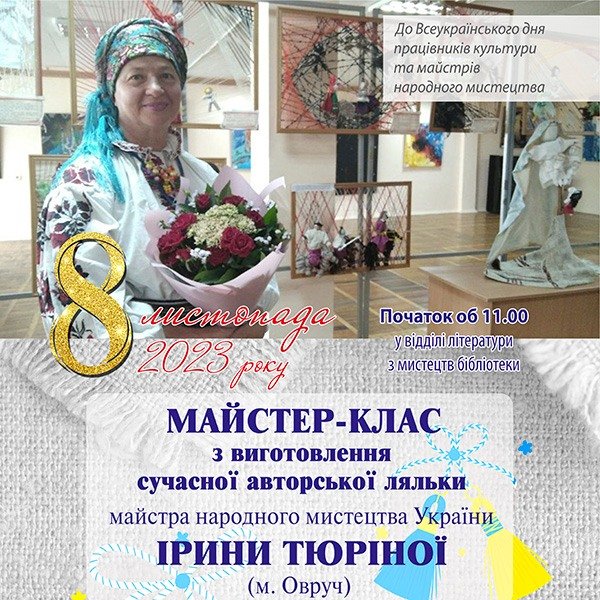 8 листопада 2023 року об 11:00 у відділі літератури з мистецтв бібліотеки відбудеться майстер-клас з виготовлення сучасної авторської ляльки.