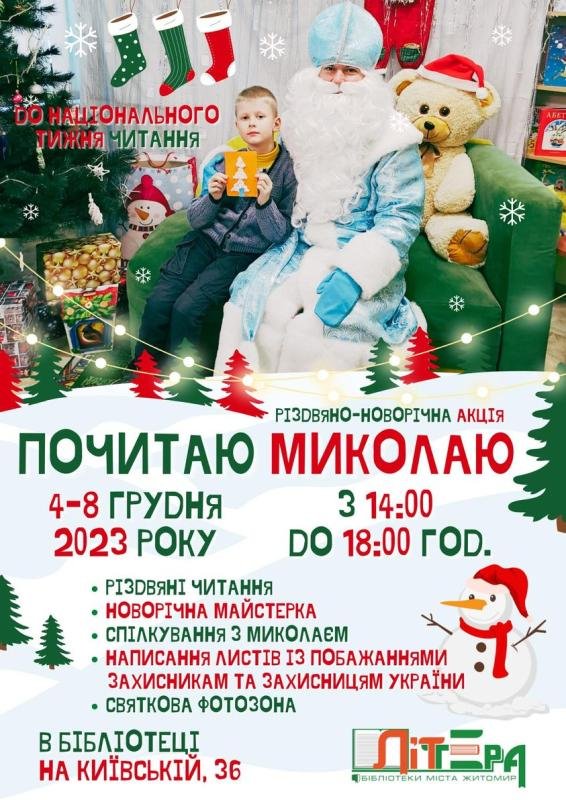 До Національного тижня читання ЛІТтера - бібліотеки міста Житомира готують щорічну різдвяно-новорічну акцію "ПОЧИТАЮ МИКОЛАЮ" для юних читайликів.