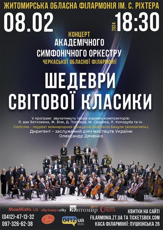 Запрошуємо вас на концерт «Шедеври світової класики» від академічного симфонічного оркестру Черкаської обласної філармонії!