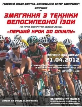 Головний суддя - Матковський Віктор Едуардович запрошує всіх на змагання з техніки велосипедної їзди на приз відкриття сезону 2012 року "Перший крок до Олімпу".