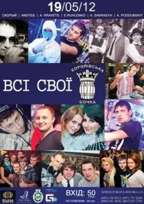 "Всі свої" - це, перш за все, атмосфера стовідсоткового нічного відпочинку з усіма необхідними для цього елементами - якісної різноманітною музикою і найкращими діджеями, недорогим баром і креативним дизайном, шикарними відеоінсталяції і різноманітним відпочинком. Тут кожна людина привносить свої дещицю позитиву в загальну атмосферу свята, створюючи для себе і всіх навколишніх необхідний комфорт від першої до останньої хвилини.