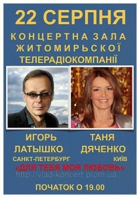 Незабываемый концерт Игоря Латышко и Тани Дяченко "Для тебя моя любовь".