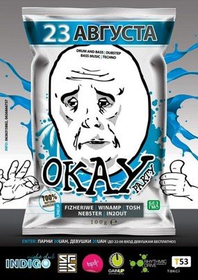 23 августа (24е выходной) состоится "вечериночка на okay...", на которой вы услышите Drum and Bass, Dubstep, Bass music, а так же Techno от все тех же ритмикдрайвовцев: