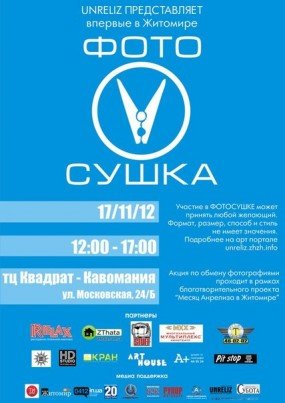 Впервые в Житомире все, кто когда-либо делал фото с пленки(!) могут принять участие в ФотоСушке! Формат, размер, способ и стиль не имеет значения!