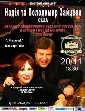 Фортепіанний дует Надія та Володимир Зайцеви (США).