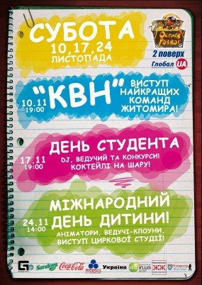 17 листопада з 19:00 – під шалені ритми ді-джеїв будемо святкувати «День студента» з різноманітними конкурсами, призами та розіграшами коктейлів.