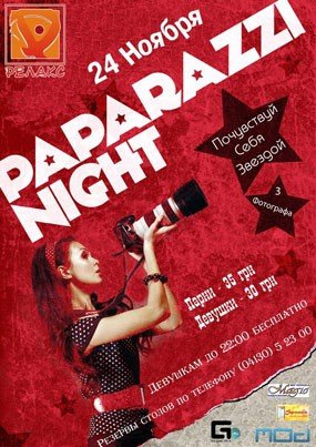 - Яркие 5 девушек получат халявные фотосессии от наших Paparazzi голоса будут определятся по лайкаму группе! http://vk.com/relaxcenter. Девушкам халявное Шампанское на входе.