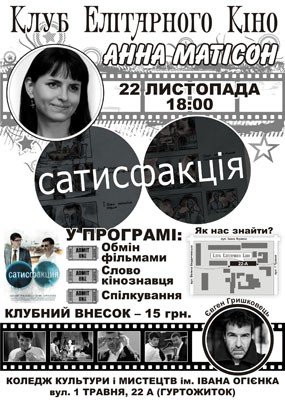 Саме цій видатній події присвячується черговий фільм Клубу Елітарного Кіно - «Сатисфакція» , режисера Анни Матісон за сценарієм та безпосередньою участю Евгена Гришківця.