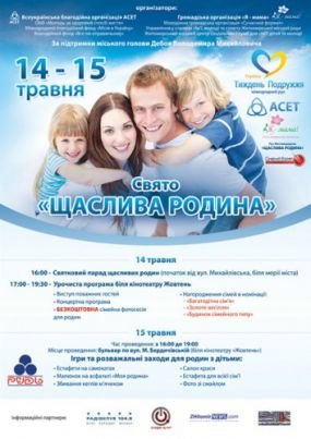 До Всеукраїнського дня сім’ї в рамках проекту «Тиждень подружжя» 14 та 15 травня в Житомирі відбудеться свято «Щаслива родина».