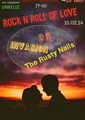Жаркий концерт присвячений дню всіх закоханих. Для вас будуть лабати 3 групи. "The Rusti nails", "Invasion", "D6". Ці хлопці знають що таке драйв. Саме вони будуть гарненько гріти серця закоханих, і розпалювати серця тих, хто ще не знайшов свою любов! У цей тематичний вечір буде дуже жарко. Чекаємо всіх!