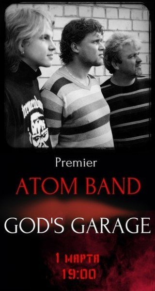 У перший день весни, в Гаражі нас будуть радувати дорослої музикою Atom Band. Заряд справжнього драйву забезпечений!