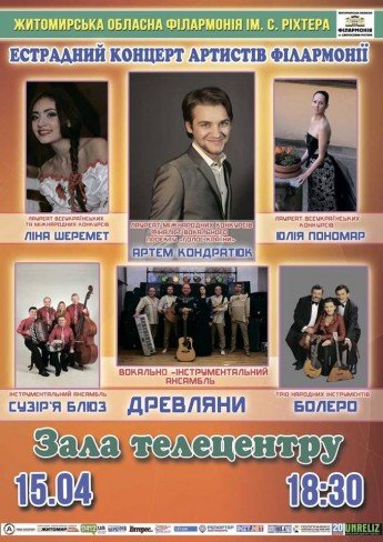 Естрадний концерт ВІА «Древляни», естрадного ансамблю «Сузіря Блюз»,артистів філармонії, А. Кондратюка, Л. Шеремет, Ю. Пономар, та тріо народних інструментів «Болеро».