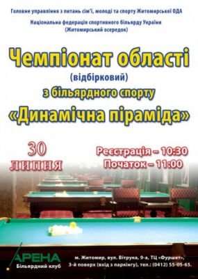 В бильярдном клубе "Арена" пройдет Чемпионат области по бильярдному спорту, дисциплина "Динамичная пирамида".