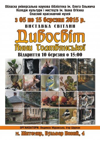 Виставка світлин "Дивосвіт" за підтримки Обласної універсальної наукової бібліотеки ім. Олега Ольжича, Коледжу культури і мистецтв ім. Івана Огієнка та Обласного краєзнавчого музею.