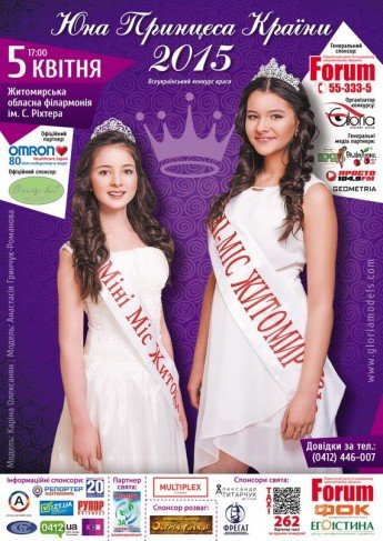 Всеукраїнський конкурс краси "Юна Принцеса Країни 2015". Початок о 17.00. Організатор: Перша професійна модельна агенція нашого міста "Gloria Model Style".