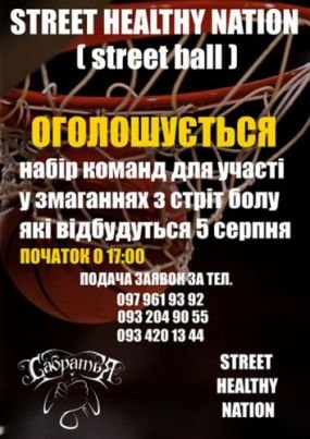 Оголошується набір команд для участі у змаганнях з стріт болу які відбудуться 5 серпня.