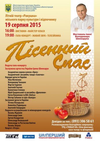 До програми фестивалю увійшли різного роду майстер-класи, презентації, виставки, що тематично пов’язані з фестивалем та народним святом Яблучний Спас. Буде фотовиставка Леоніда Шувчука, який робив практично всі фотосеесії Володимира Шинкарука.