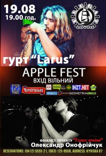 Цієї середи для вас виступить гурт LARUS та фіналіст шоу «Голос країни-2» Олександр Онофрійчук