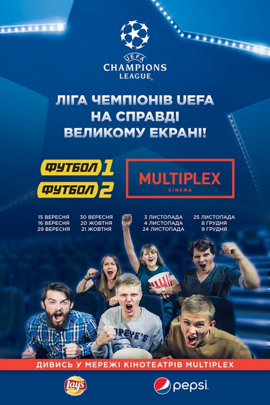 Мы предлагаем онлайн просмотр групповых матчей Лиги Чемпионов на экранах кинотеатров сети "Мультиплекс".