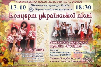 В Житомир завітає із своєю програмо Черкаська обласна філармонія, а саме тріо "Вербена" та ансамбль народної музики "Росава"!