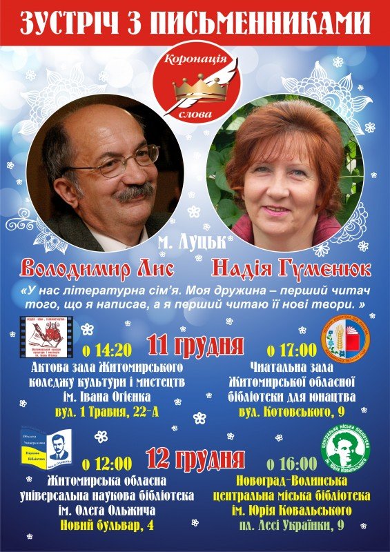 Володимира Лиса називають справжнім феноменом сучасності. Журналіст, драматург, прозаїк, майстер витонченого слова і глибоко народний письменник, з кожним новим романом Володимир Лис розкриває нові грані свого таланту. Перелік його нагород вражає: «Людина року», кавалер ордена «За заслуги» III ступеня, автор «Найкращого роману десятиріччя» (за роман «Століття Якова»), володар численних премій конкурсу «Коронація слова» (200, 2001, 2003, 2008, 2010 роки), «почесний громадянин Волині».