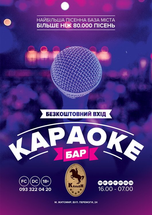 Караоке в "Каньоне" - это масса приятных впечатлений и эмоций, а также: - бесплатный вход и фейсконтроль;