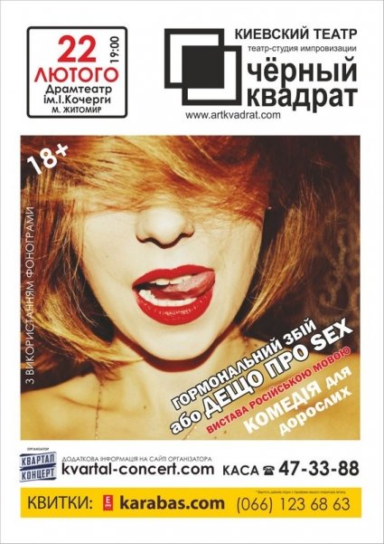 Спектакль, который сложно описать – его нужно только смотреть! Мы докажем, что многие из людей, считающих себя нормальными, на самом деле – больны, но это вовсе не страшно! Постараемся вывести модель среднестатистической украинской семьи! Пофантазируем, что могло бы сказать наше тело, имей оно право голоса! Расскажем, о чем могут мечтать проститутки! Раскроем тайну – о чем врут многие мужчины! Ответим реваншем – что же утаивают почти все женщины!