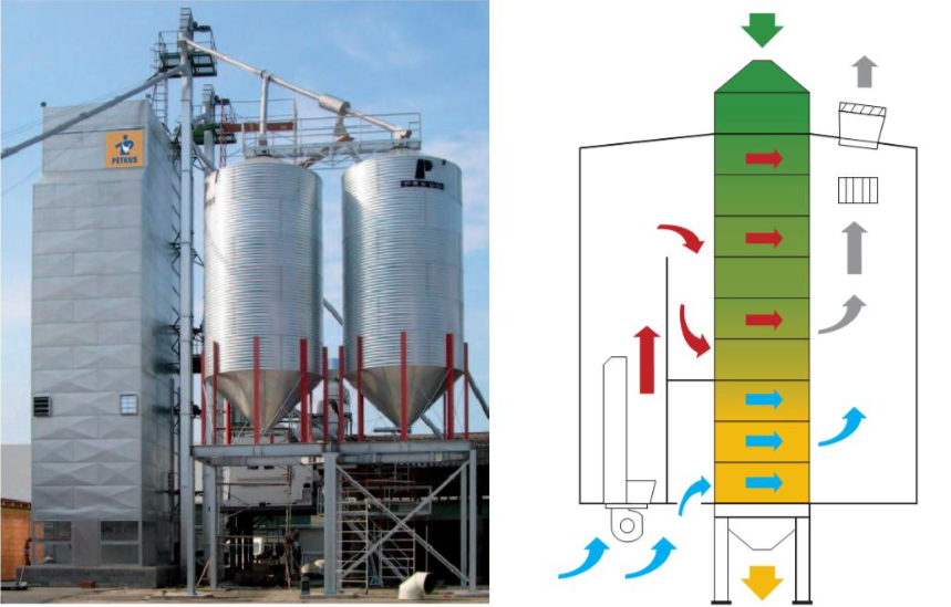 Благодаря эффективной работе элеватора, использование воздуха, своевременно проведённая сушка зерна повышает его стойкость хранения, улучшает потребительские свойства. Сушилка зерна PETKUS даёт возможность ускорить созревание зерновых семян, удалить лишнюю влажность, улучшить внешний вид, избавить зерновой материал от вредителей и микроорганизмов.
