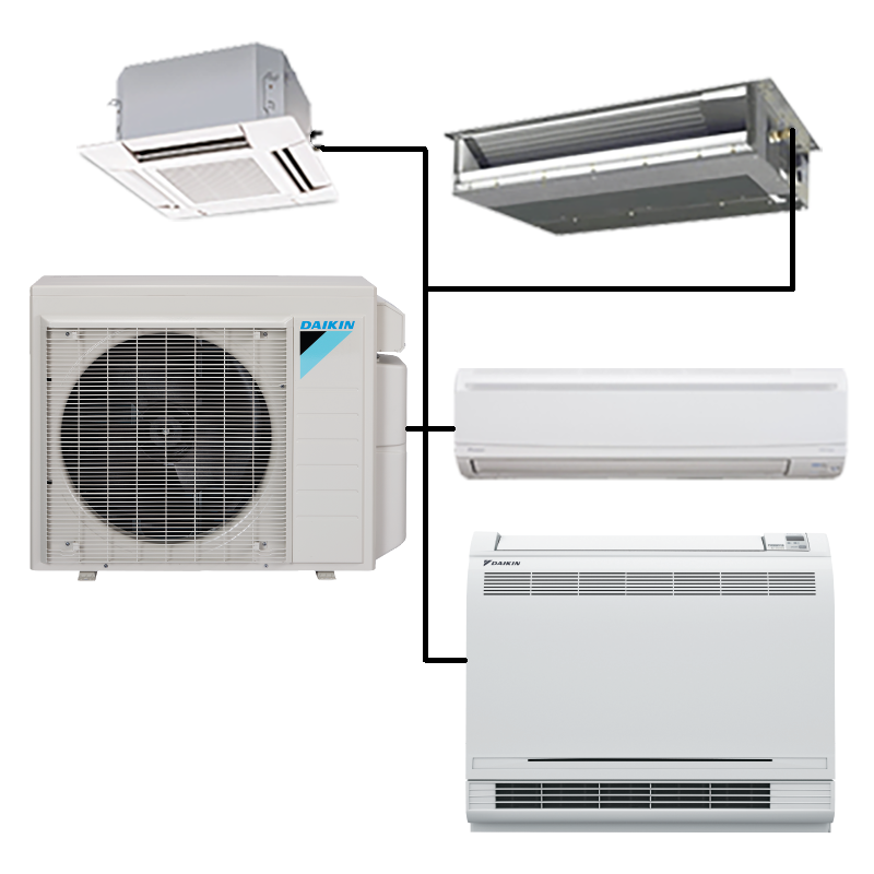 Наборные. В такие модели можно подключить значительно больше механизмов (до 16). Вы сможете подключить механизмы к наружной части с помощью специальных разветвлений фреонового контура. Одна такая система поддерживает до трёх компрессоров,