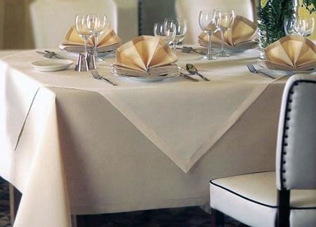 2. Льон і бавовна. Натуральні тканини завжди цінувалися серед власників ресторанів. Однак за ними потрібен ретельний догляд: їх потрібно регулярно гладити і крохмалити; інакше їх вид помітно зіпсується. Зазвичай такі скатертини використовують в тих ресторанах, чия тематика пов'язана зі старовиною, так як вони надають особливий колорит.