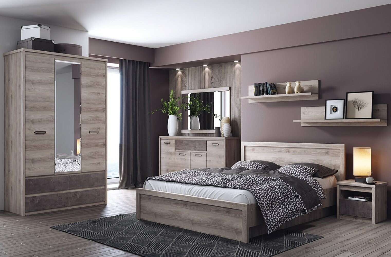 - функциональность модулей – для начала, нужно решить, что обязательно должно быть в спальне; стоит определиться, без какой мебели не обойтись, и где хранить технику; сколько свободного места должно быть в комнате; тумбочка, пуфик, комод, зеркало, стеллаж, стол и т.д;