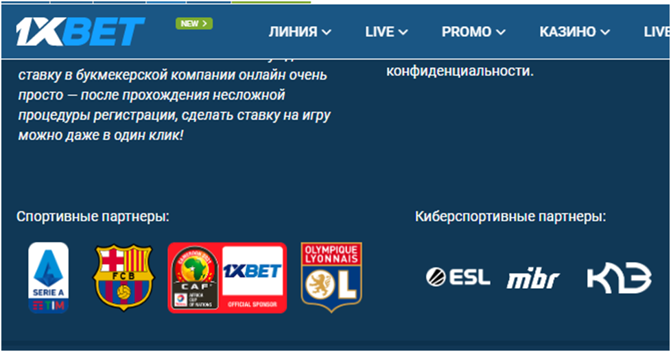 Совсем неудивительно, что 1хбет является генеральным спонсором многих футбольных клубов. Их перечень периодически меняется. На момент написания данного материала 1хбет сотрудничал с клубами «Барселона», «Лион», а также выступал партнером итальянской Серии А и Кубка Африканских Наций. Расскажем вкратце о партнерах 1хбет.