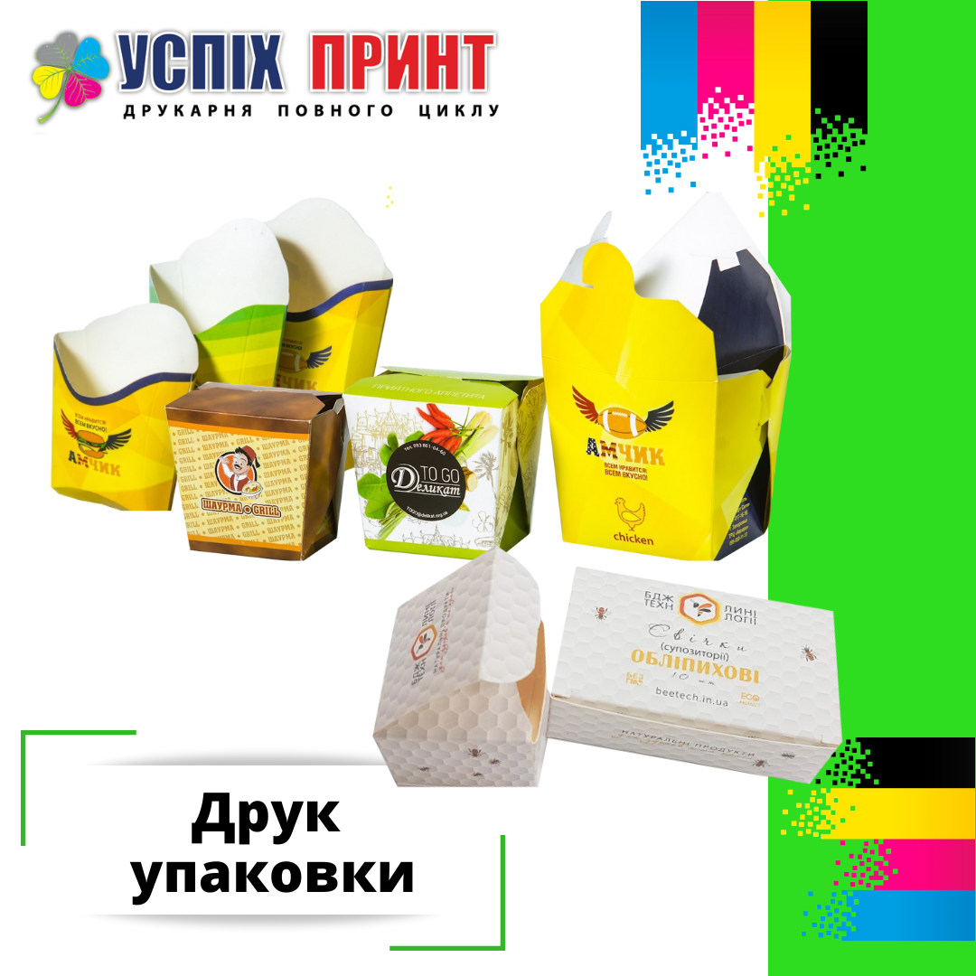 “Успіх Принт” – друкарня повного циклу з 10-річним досвідом роботи та індивідуальним підходом до кожного свого клієнта. Одним із основних її напрямків є виготовлення упаковок для товарів, серед яких продукти, косметичні та лікарські засоби, різноманітні подарунки, побутова техніка та ін. Тож ви без зайвих коливань можете віддати в руки професіоналів усі етапи створення пакувальної продукції – від дизайну та макету до власне виготовлення упаковки.