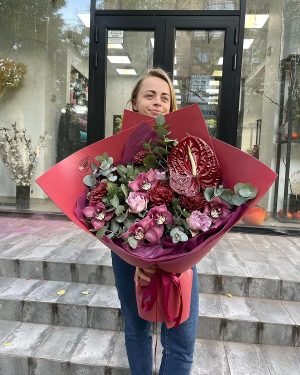 - Необычное оформление, которое создается флористами, придает букету дополнительную изюминку.