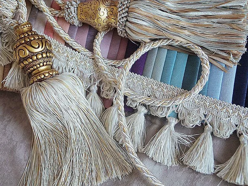 Серед активно вживаних аксесуарів можна назвати також стрічку і бахрому. З них створюються різноманітні рюші, банти, вузли, оформлюються краї штор та фіранок, формуються драпірування та об’єми.