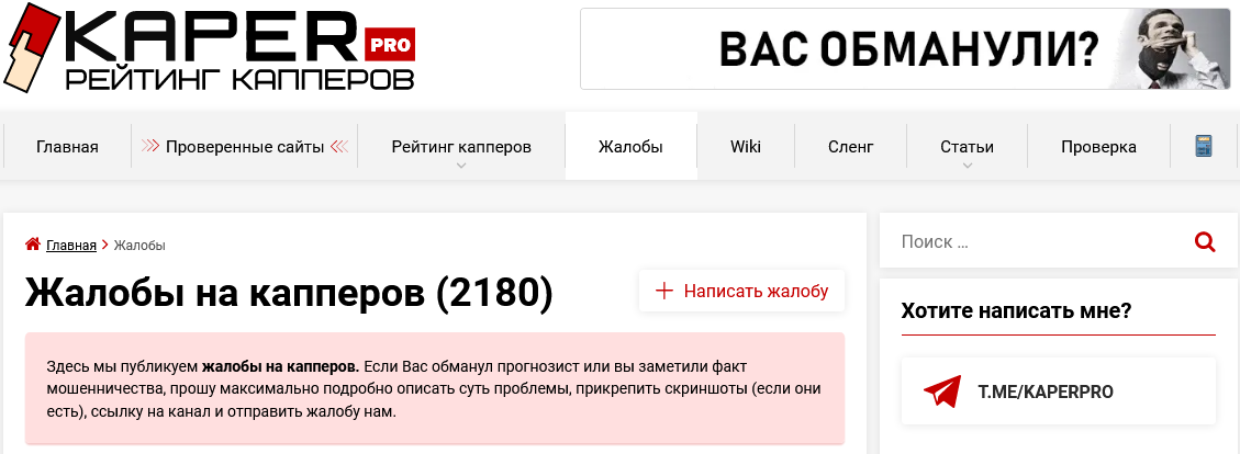 Если же сотрудничество с каким-либо каппером обернулось обманом, на сайте можно оставить жалобу – тоже полезная функция, позволяющая выявлять мошенников общими усилиями.